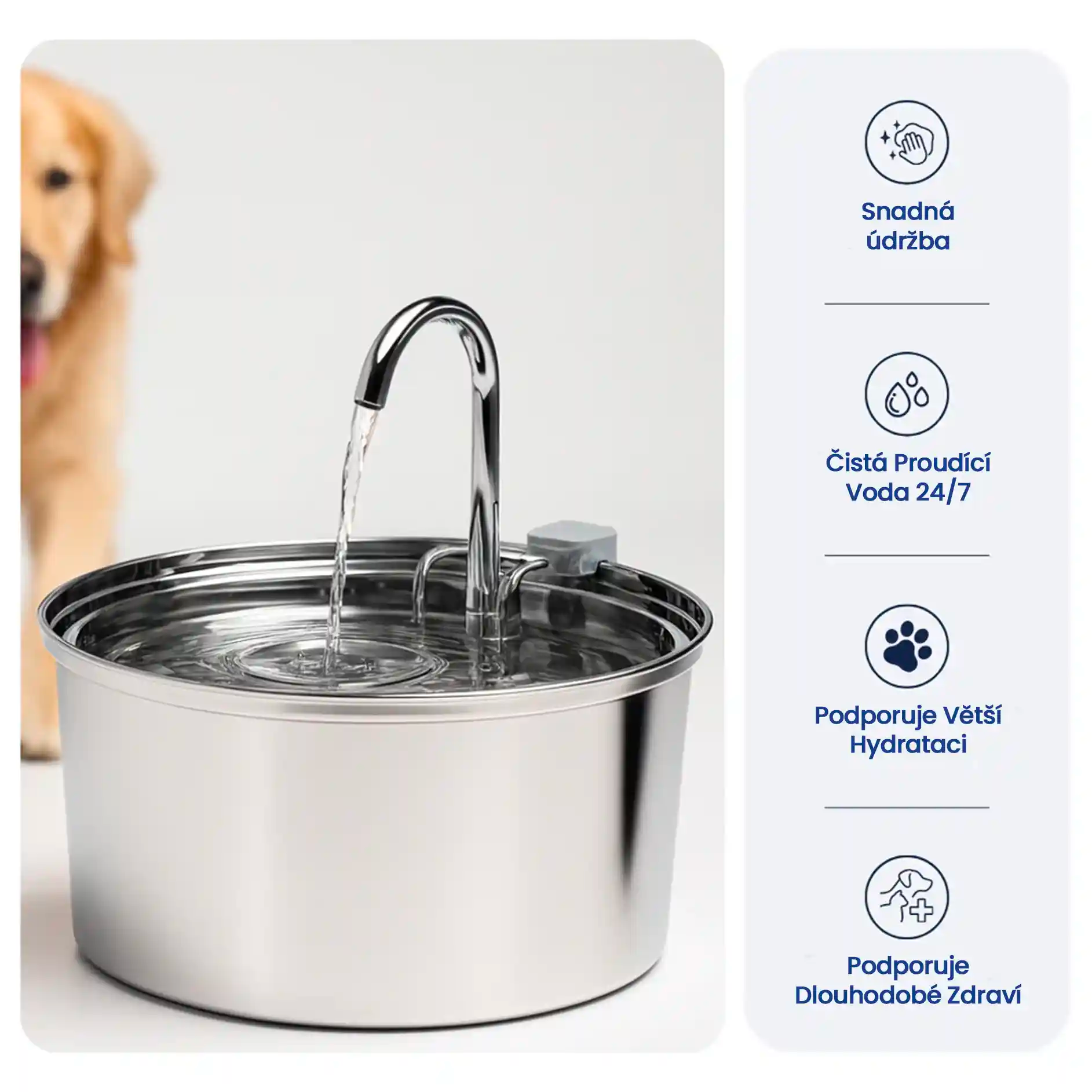 Díky tichému provozu se váš pes u vody cítí klidně a bezpečně, což může přirozeně podporovat jeho chuť k pití.