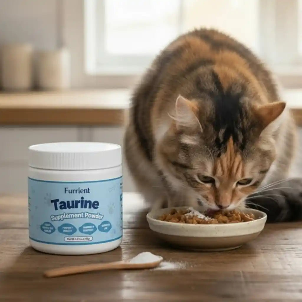 Ne, taurin je rozpustný ve vodě, což znamená, že jakýkoli přebytek se přirozeně vyplavuje močí. Veterináři potvrzují, že taurin je jeden z nejbezpečnějších suplementů – nelze se ním předávkovat. Proto je Furrient bezpečný i při dlouhodobém denním použití.